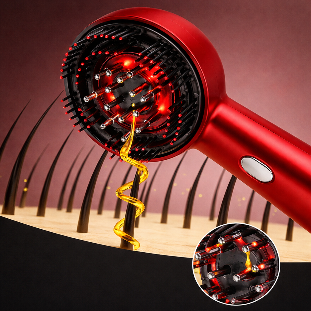 Le massage active les follicules, nourrit le cuir chevelu et améliore la densité. Votre huile pénètre mieux, vos racines sont revitalisées, et vos cheveux paraissent plus pleins jour après jour.